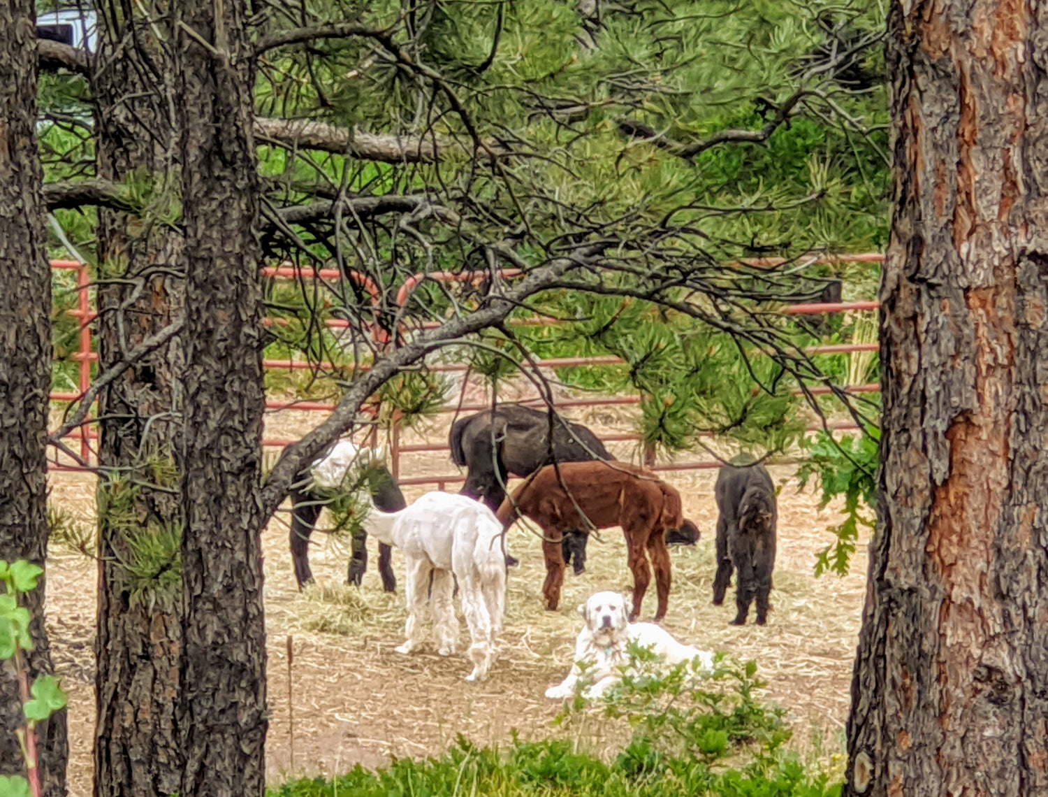 The Alpacas (Mojave, Poirot, Coalton, Sunny & Paco) are protected by Pepper the Pyrenees. About US.