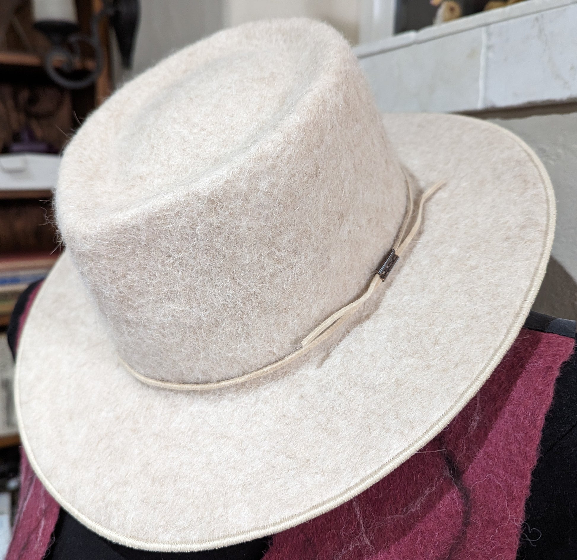 The “Oppie” is our newest hat style, and is our version of a traditional Pork Pie. It has the trademark Moondance Alpaca Ranch wire in the brim, so that you can shape it to your perfect style without loosing the comfort and the warmth of the alpaca felt. The size of the brim and the color personalize it just for you.