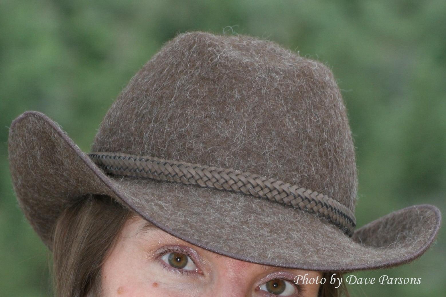 This "Darcy" style cowboy hat was hand felted using natural alpaca fiber. (All natural color straight from the animal.) You tell me your color preference and I will make it to order. The photos are examples of what I have in stock, or favorites I have made for others. The brim size on this style looks best at about 3″. This felted alpaca hat fits most small to average head sizes and is very comfortable because it forms to your head.